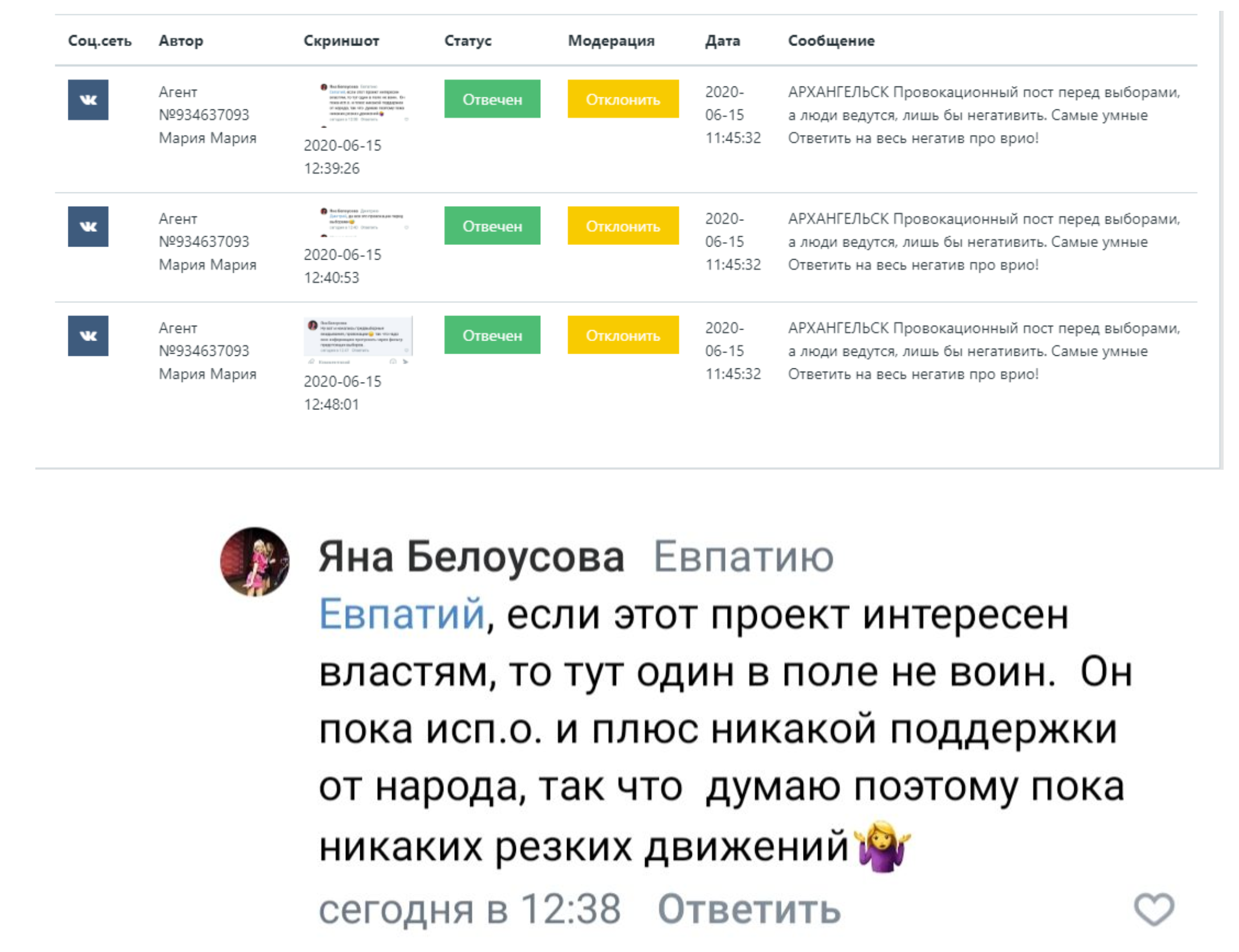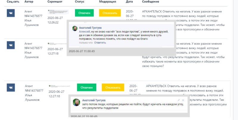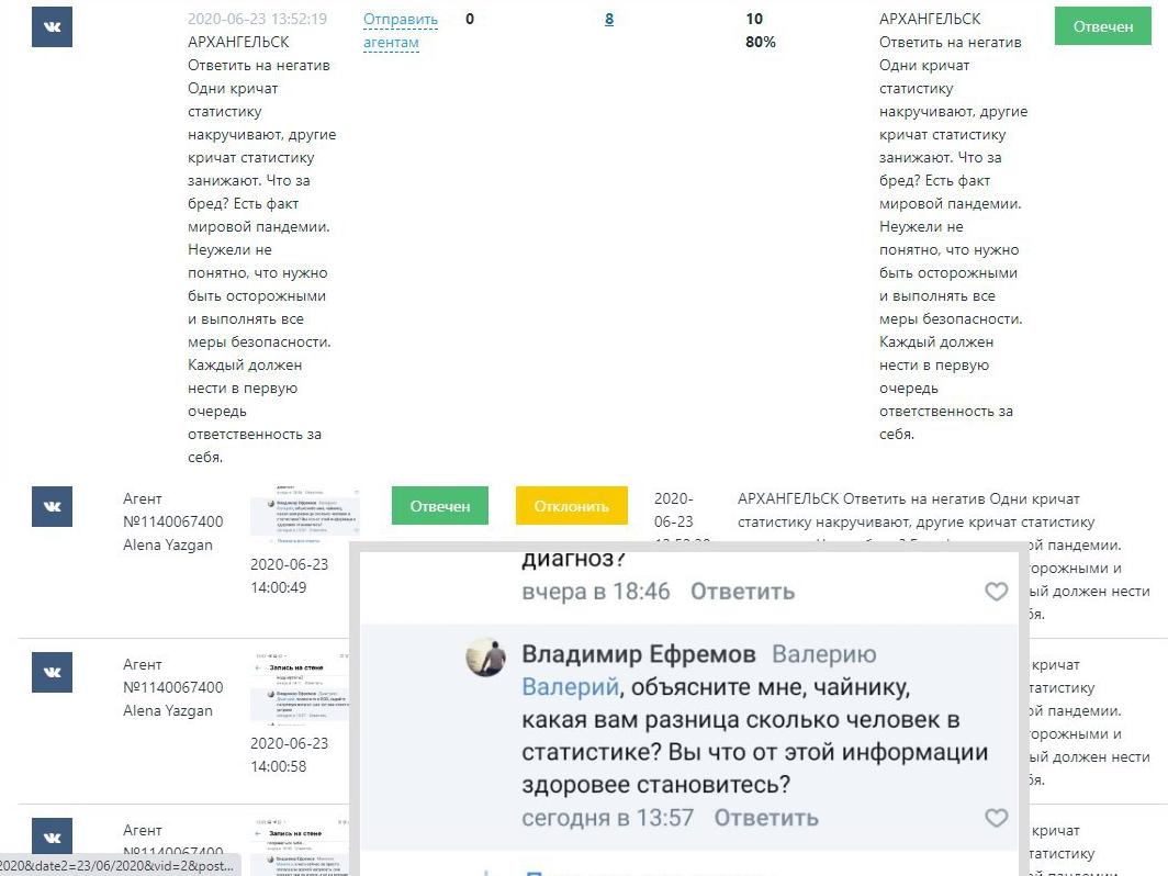 К постам, в которых рассказывалось о нарушениях на выборов, агентов посылали писать комментарии вроде: «Что за провокации, не может такого быть, все честно, врать нет смысла!».