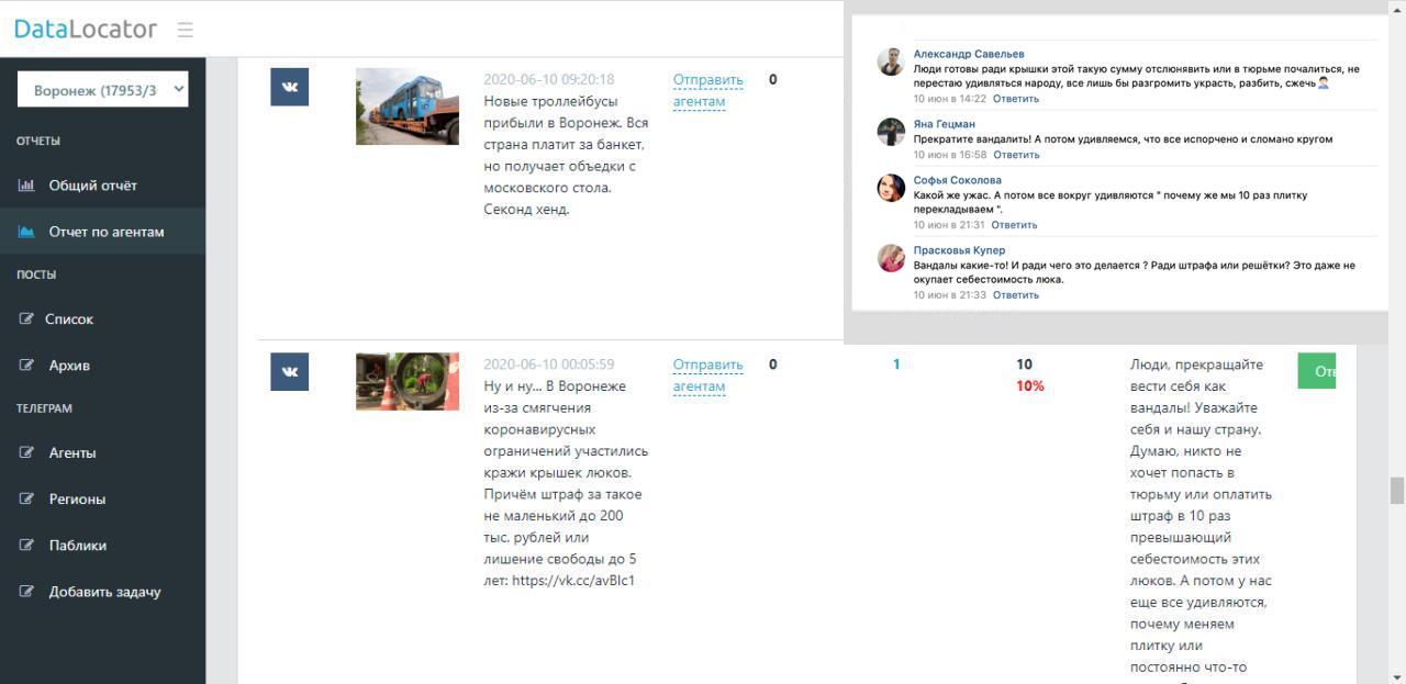 «Менеджер Елена любезно провела мне вводный инструктаж. В системе отображались комментарии людей из социальных сетей и форумов, которые отбирались по ключевым словам, или из групп населенного пункта, по которому мы работаем, любые комментарии. Если были жалобы, они направлялись в нужное подразделение, — рассказывает Дарья, попросившая не указывать свою фамилию. — [С постами] нужно делать то же самое, что и с комментариями: направлять посты с жалобами в нужные инстанции. Но посты с негативом в сторону правительства нужно отправлять специальным "агентам", которые должны "уменьшать негатив жителей". После предоставленных мне инструкций я сделала вид, что все хорошо, начала изучать новые рабочие возможности».