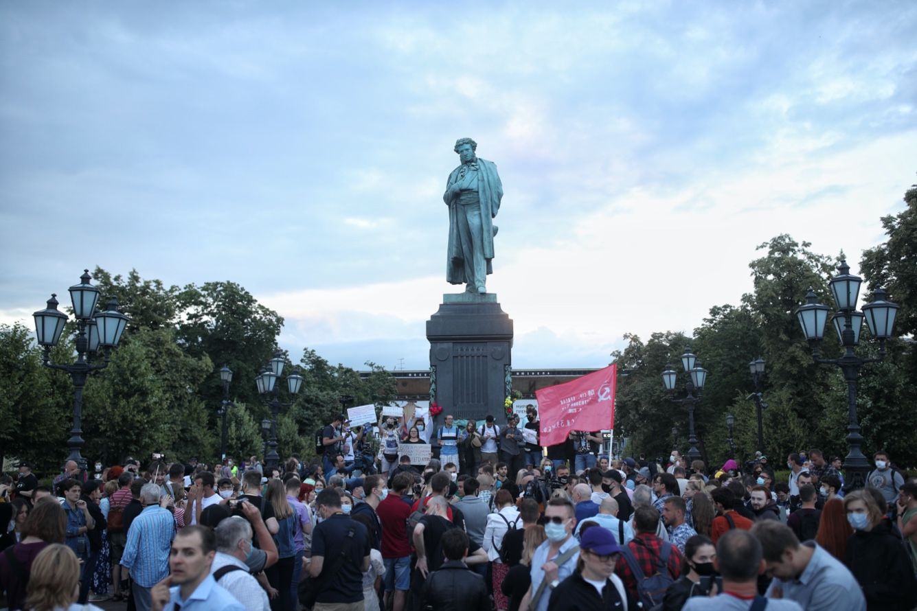 Evgeny Feldman for “Meduza” On the evening of July 1, the end of Russia’s final day of voting in the plebiscite on constitutional amendments, protesters opposing the “zeroing” of Vladimir Putin’s presidential terms gathered in Pushkin Square in downtown Moscow. The rally turned out to be rather small, with no more than a few hundred people taking part. Law enforcement didn’t get involved.