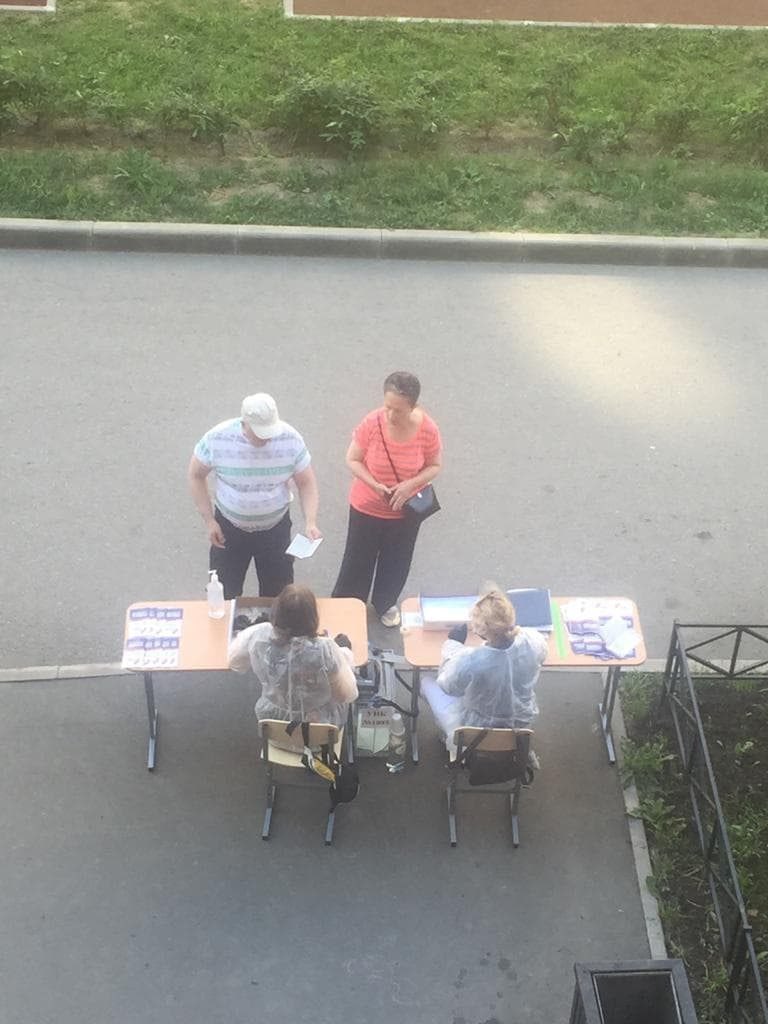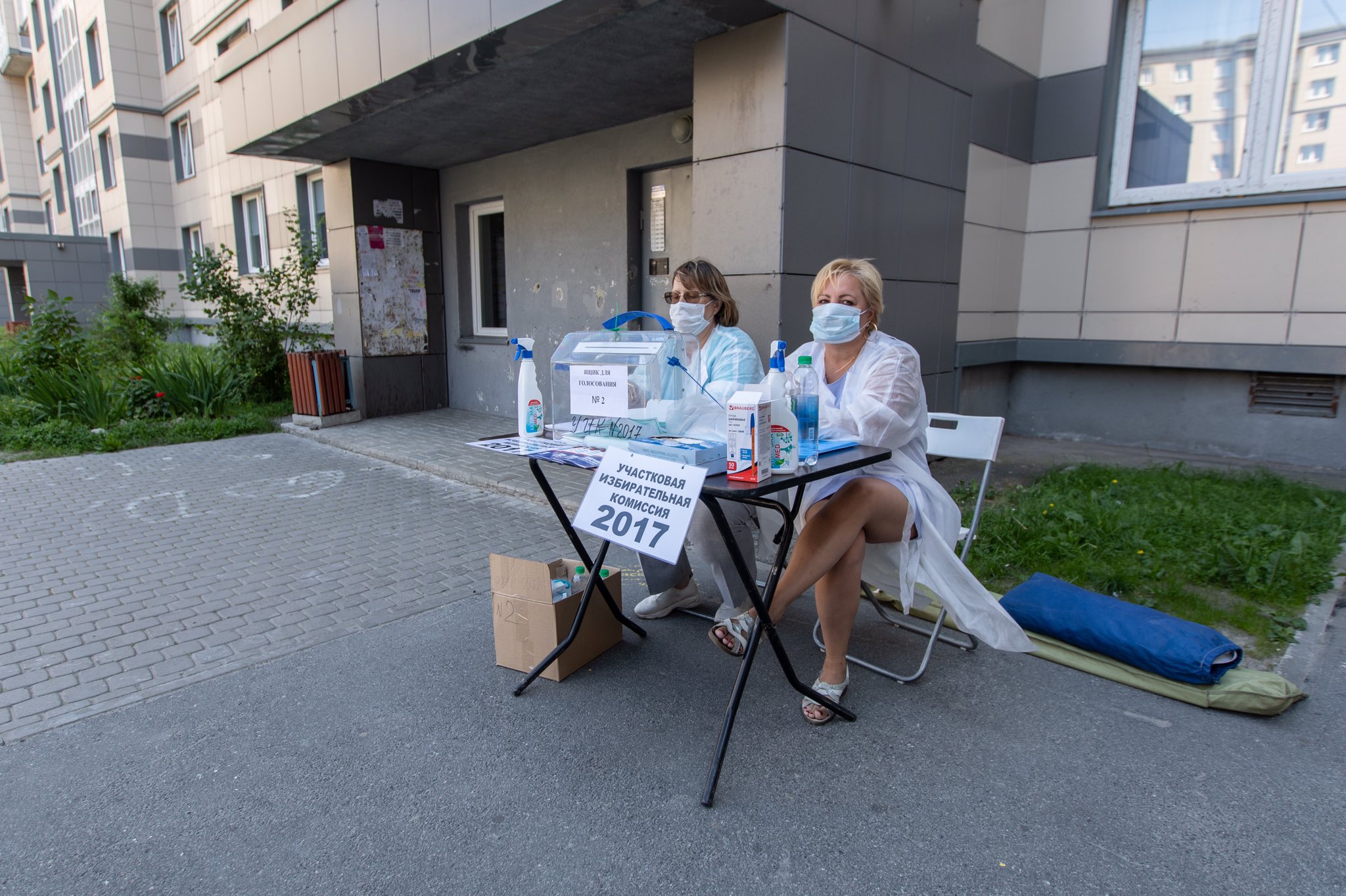 Избирательные участки установили у многих петербургских домов. Сотрудникам выдали маски, перчатки и антибактериальные средства.