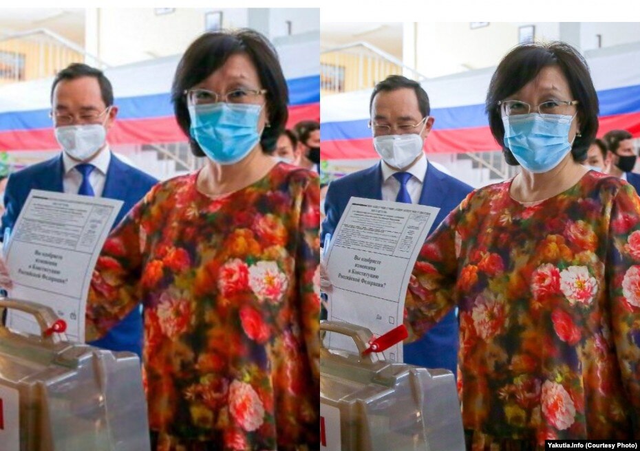 Голос мэра Якутска Сарданы Авксентьевой "за" поправки в Конституцию подделали в фотошопе. Ненастоящую фотографию с избирательного участка стали активно распространять в социальных сетях. При этом сама градоначальник проголосовала против изменений главного закона страны. В подтверждение этого её пресс-секретарь и местные СМИ распространили оригинал снимка, сделанного в момент, когда Авксентьева опускает бюллетень в урну.