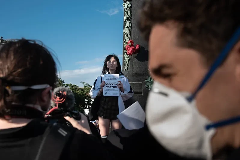 — На самом деле, это просто жесть, — говорит молодой парень Артем про количество пришедших на Пушкинскую. — У нас царь до 2036 года остается, а людей пришло два с половиной человека. Может, потому что в тот же день объявили, или Навальный не поддержал, я не знаю [...] Я проголосовал против поправок, потому что я сейчас со спокойной совестью понимаю, что я хотя бы что-то сделал, чтобы всего этого не допустить.