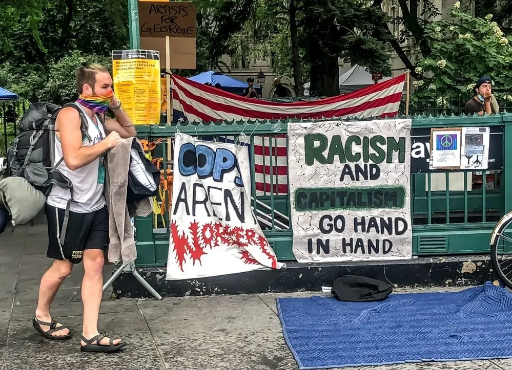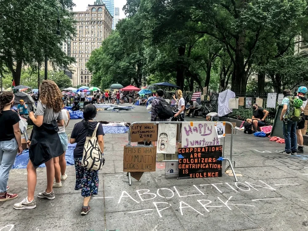 Автономов в Портленде разогнали еще в середине июня, в Сиэтле начались убийства, владельцы магазинов в автономной зоне подали в суд на мэра, 1 июля полиция пошла на штурм и расчистила зону. На данный момент похожие автономии зарождаются в Ричмонде (Виргиния) и Филадельфии (Пенсильвания), активисты в Нью-Йорке продолжают держать оборону. Дмитрий Бухонко-Крошицкий специально для «Новой» узнал, как живут в «Большом яблоке» те, кто готов строить общество без полиции.