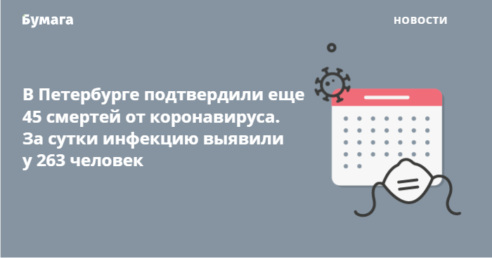 Актуальные новости о распространении COVID-19 в городе читайте в рубрике «Бумаги» «Коронавирус в Петербурге».