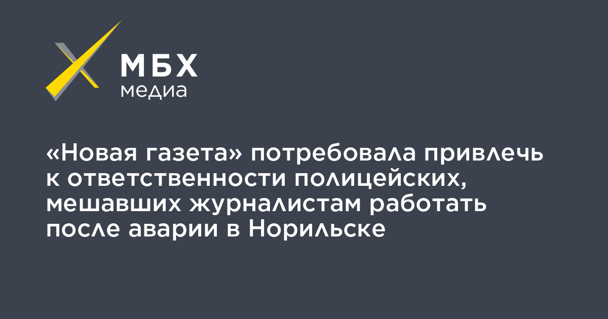 «Новая газета» потребовала привлечь к ответственности полицейских, мешавших журналистам работать после аварии в Норильске