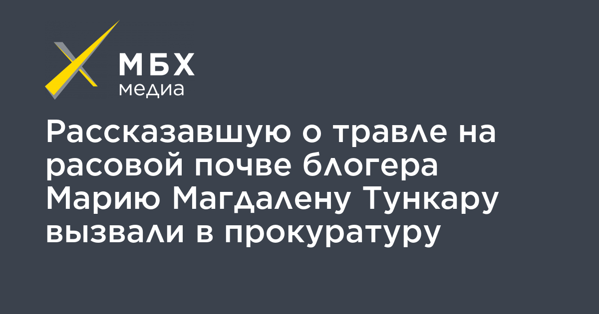 В Петербурге блогера Марию Магдалену Тункару, которая получала угрозы из-за критики национализма и расизма в России, вызвали в прокуратуру на 6 июля. Об этом Тункара сообщила «МБХ медиа».