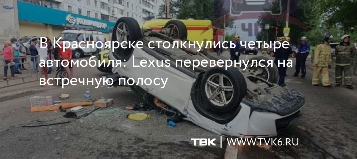 В Красноярске столкнулись четыре автомобиля: Lexus перевернулся на встречную полосу