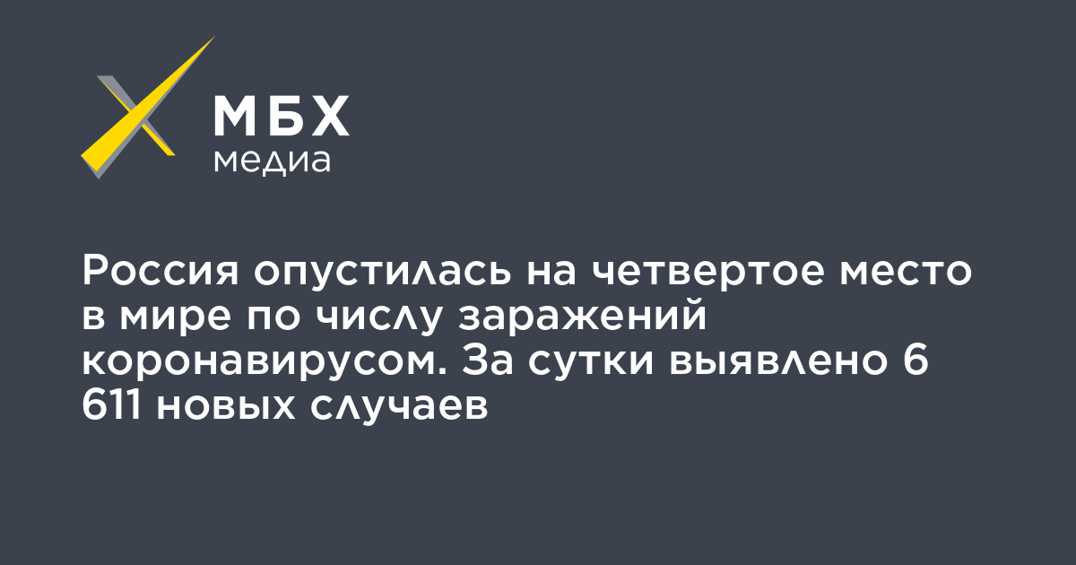 Россия опустилась на четвертое место в мире по числу заражений коронавирусом. За сутки выявлено 6 611 новых случаев