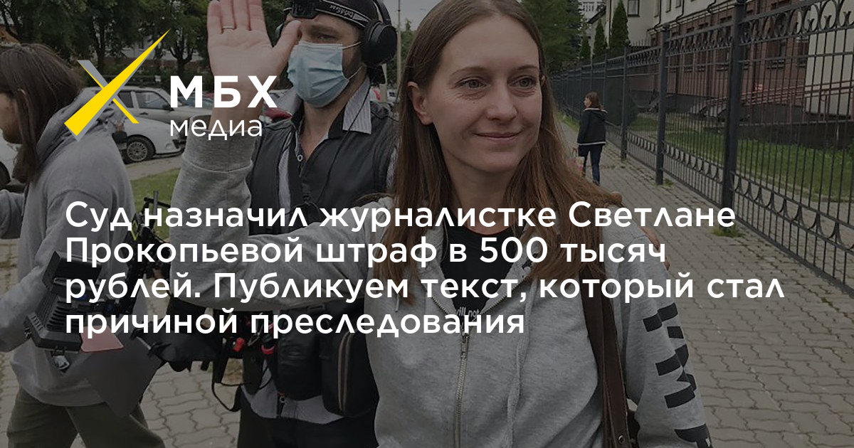 Суд назначил журналистке Светлане Прокопьевой штраф в 500 тысяч рублей. Публикуем текст, который стал причиной преследования