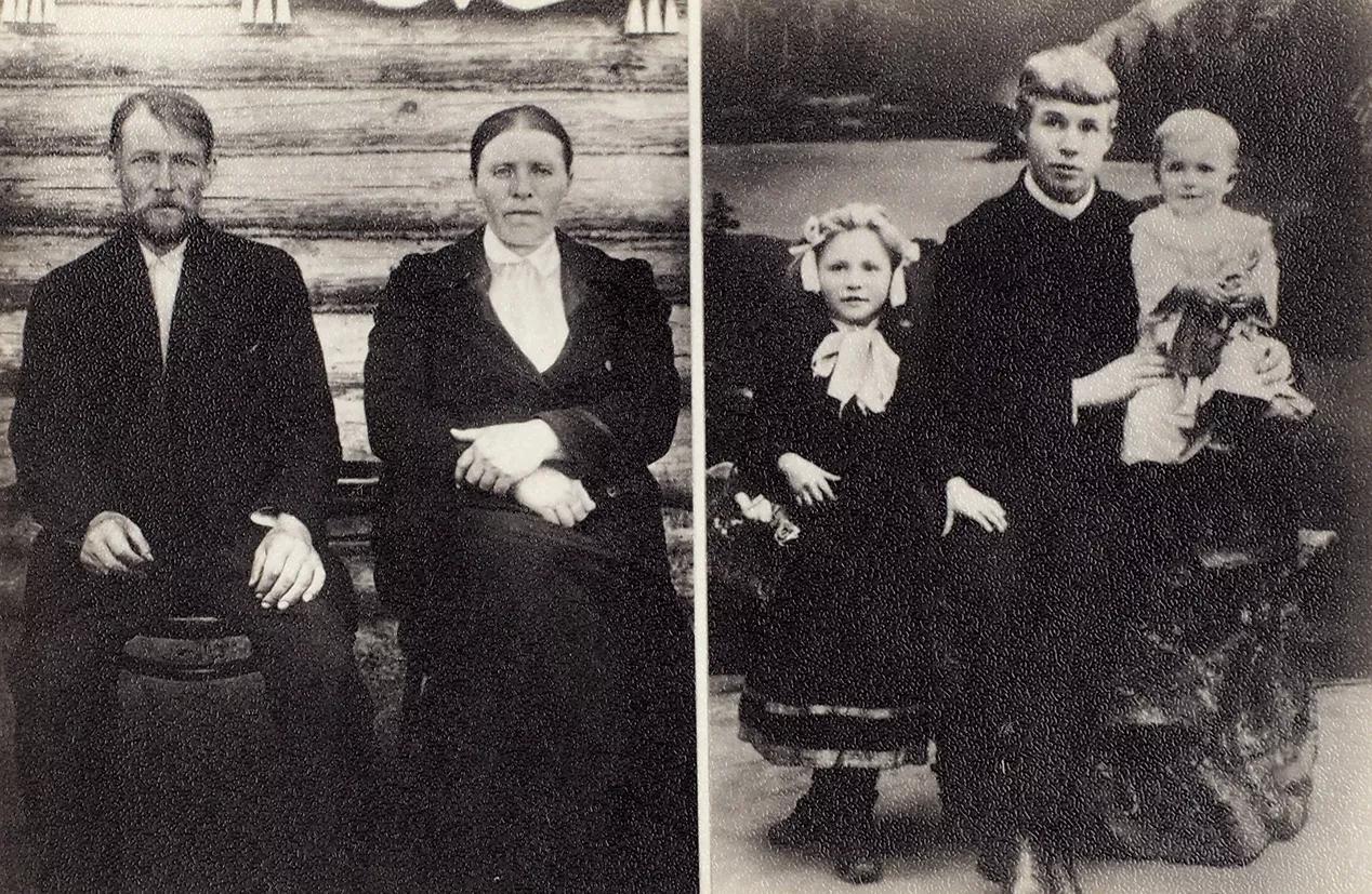 Слева: родители поэта. Справа: Сергей Есенин с сестрами