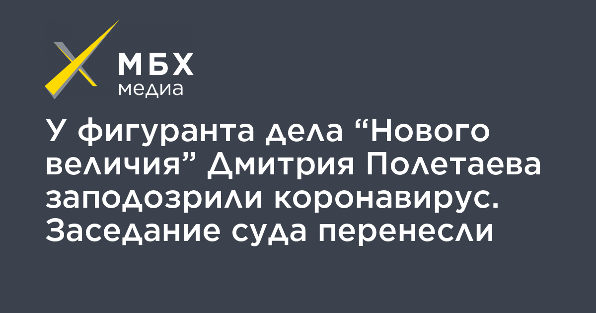 У находящегося под арестом фигуранта дела «Нового величия» Дмитрия Полетаева заподозрили коронавирус, заседание суда, на котором прокуратура должна была запросить сроки обвиняемым, перенесли. Об этом сообщил «МБХ медиа» адвокат Максим Пашков.