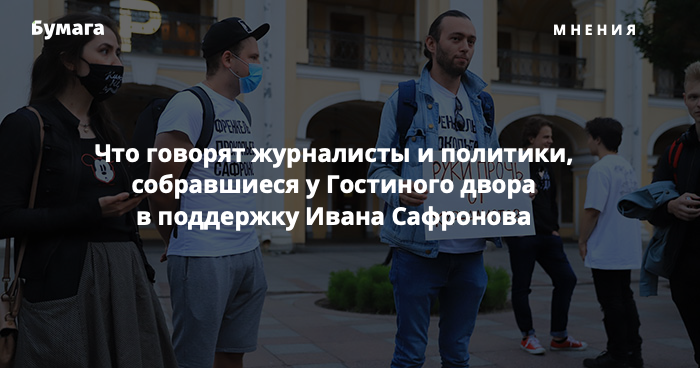 В Москве и Петербурге в этот же день прошли акции в поддержку Сафронова. У «Гостиного двора» собрались журналисты и политики, некоторые стояли в одиночных пикетах с плакатами «Руки прочь от журналистов». «Бумага» поговорила с собравшимися.