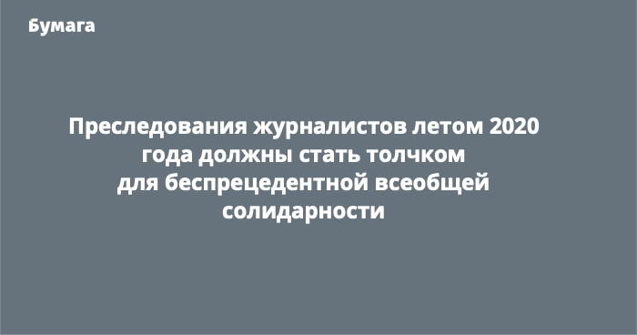 Дела, по которым преследуют наших коллег, формально никак не связаны. Но вместе они выглядят угрожающе для российской журналистики вообще — и это угроза для всего общества. Преследования журналистов летом 2020 года должны стать толчком для беспрецедентной солидарности не только журналистского сообщества, но и наших читателей, зрителей, слушателей.