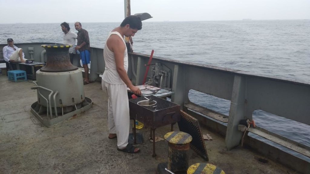 Это не единственная проблема Плотникова. В отсутствии топлива не работает и камбуз — так что зачастую еду экипажу приходится готовить прямо на корме корабля, под палящим солнцем, на самодельном мангале, который российский механик захватил в рейс с собой.