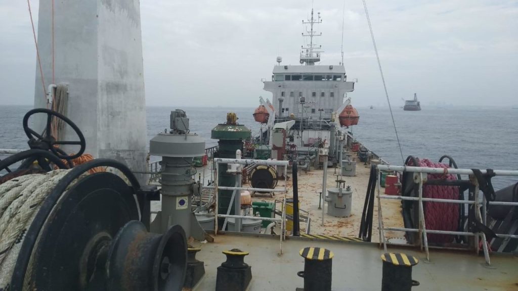 Сейчас танкер стоит без опознавательных знаков — без топлива не работает дизель-генератор, и корабль не может включить опознавательные огни. По словам Плотникова, это небезопасно: «Любой проходящий объект может его [задеть]».