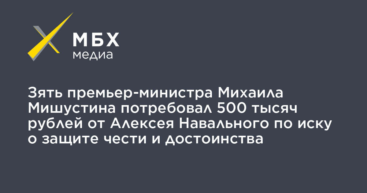 Зять премьер-министра Михаила Мишустина потребовал 500 тысяч рублей от Алексея Навального по иску о защите чести и достоинства