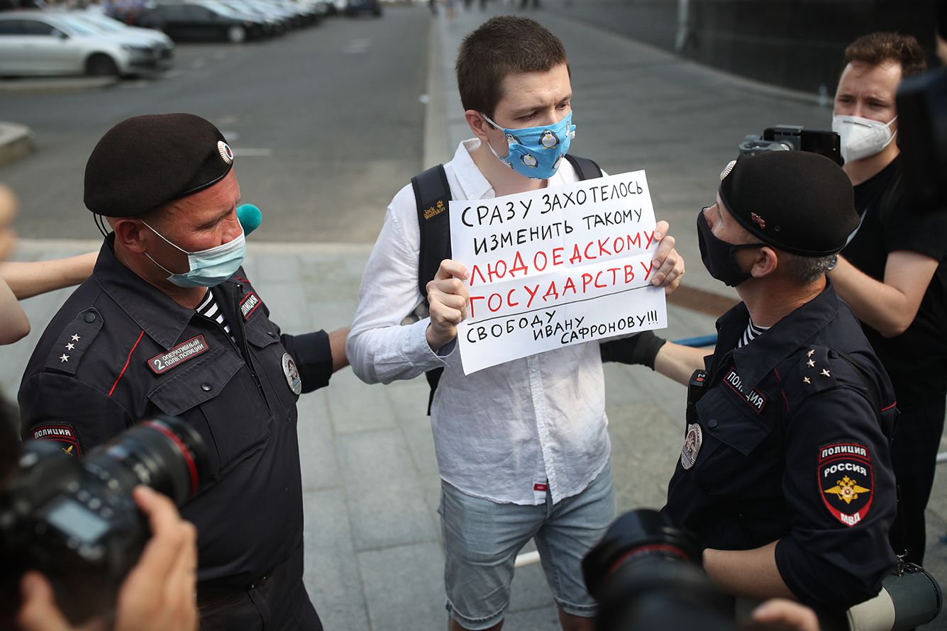 On July 7, federal agents arrested “Roscosmos” communications adviser and former Kommersant and Vedomosti correspondent Ivan Safronov on suspicion of high treason. The authorities also searched his home and office, as well as the apartment of his ex-girlfriend, Holod Media editor-in-chief Taisiya Bekbulatova (a former Meduza correspondent). Outside the Federal Security Service’s headquarters in Lubyanka Square, during Safronov’s arraignment hearing, dozens of journalists picketed, each taking turns holding up signs in his defense, and police officers arrested them, one by one, for an unlawful assembly. Here’s a detailed rundown of everything Meduza’s correspondents witnessed on day one of the Safronov affair.