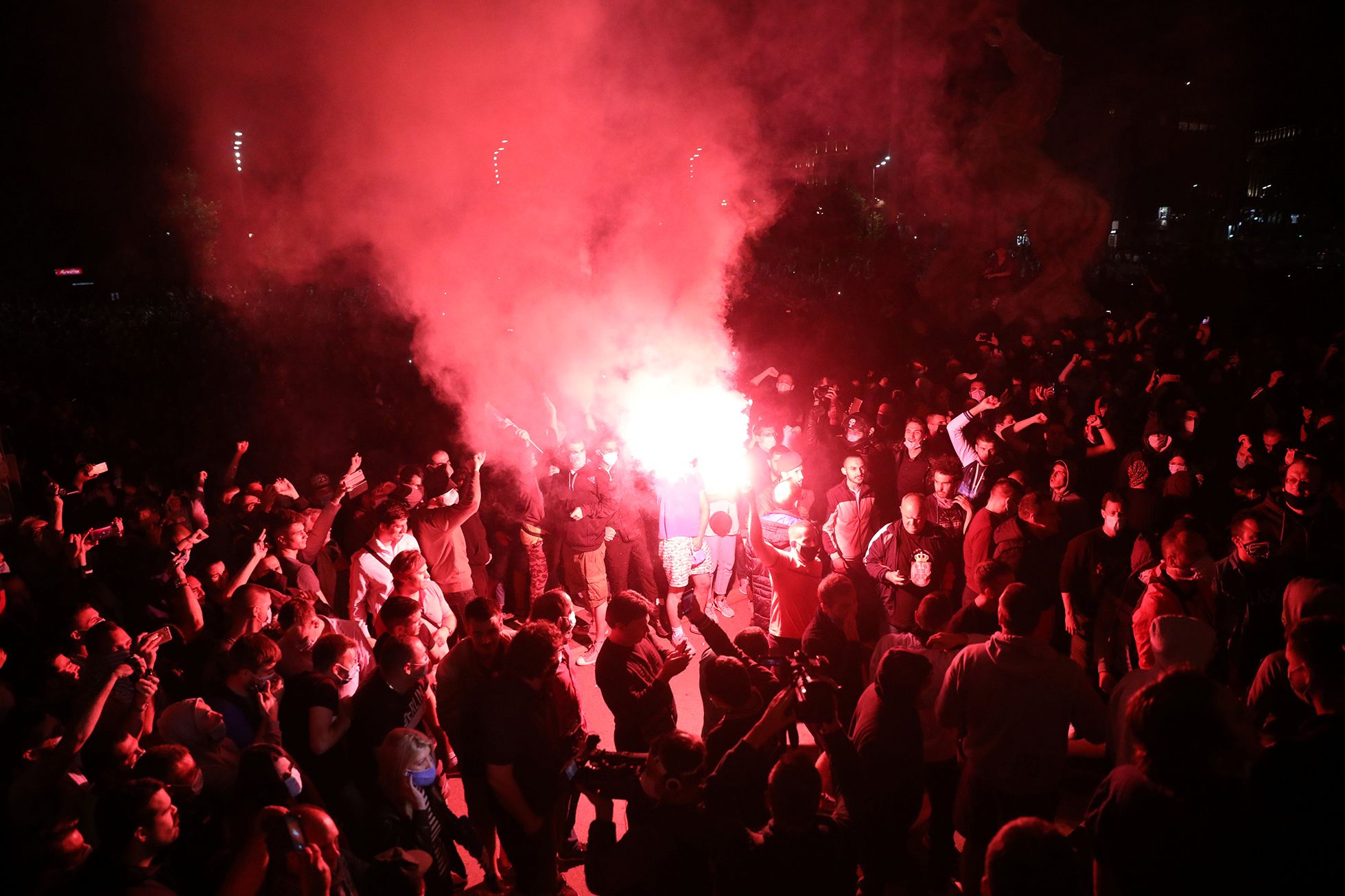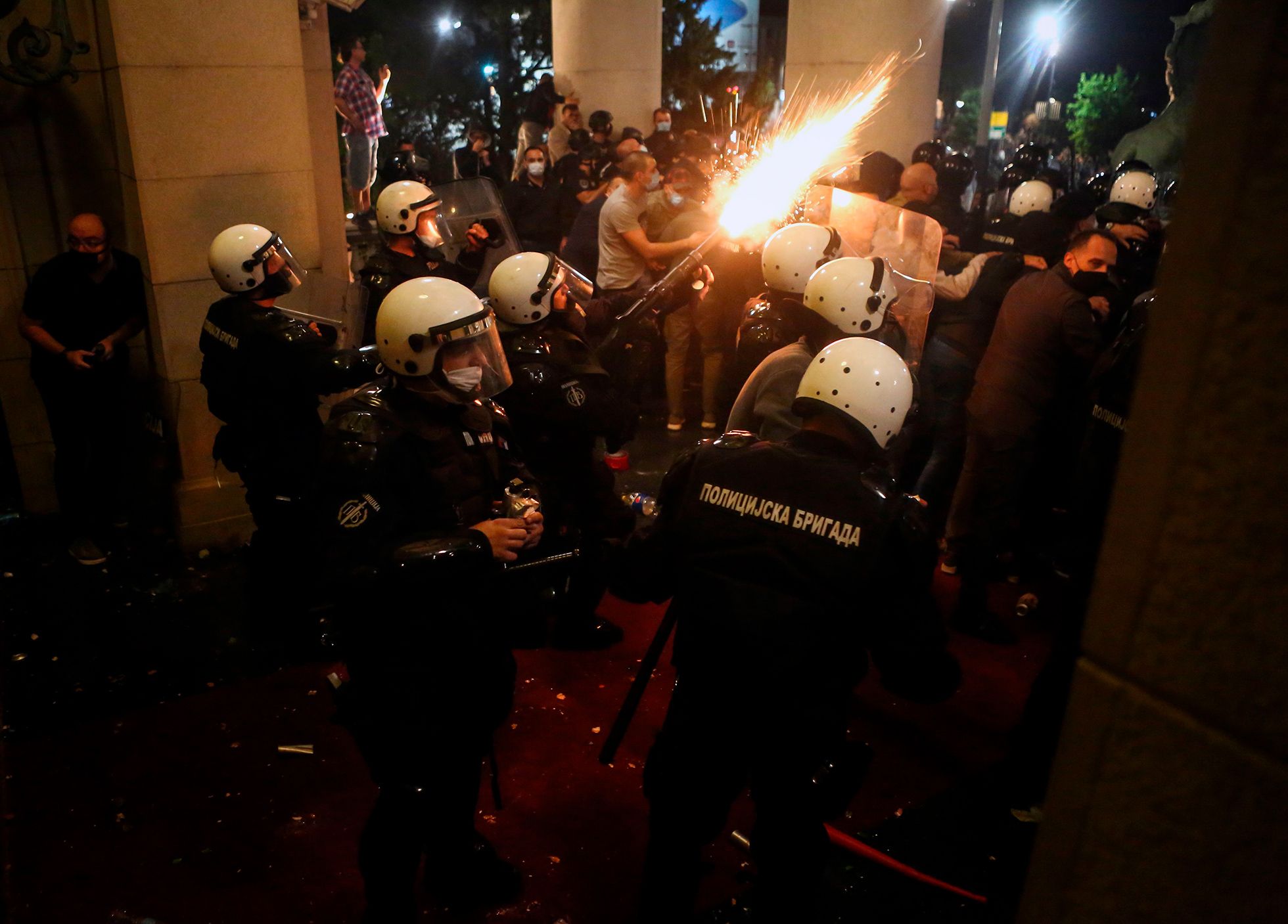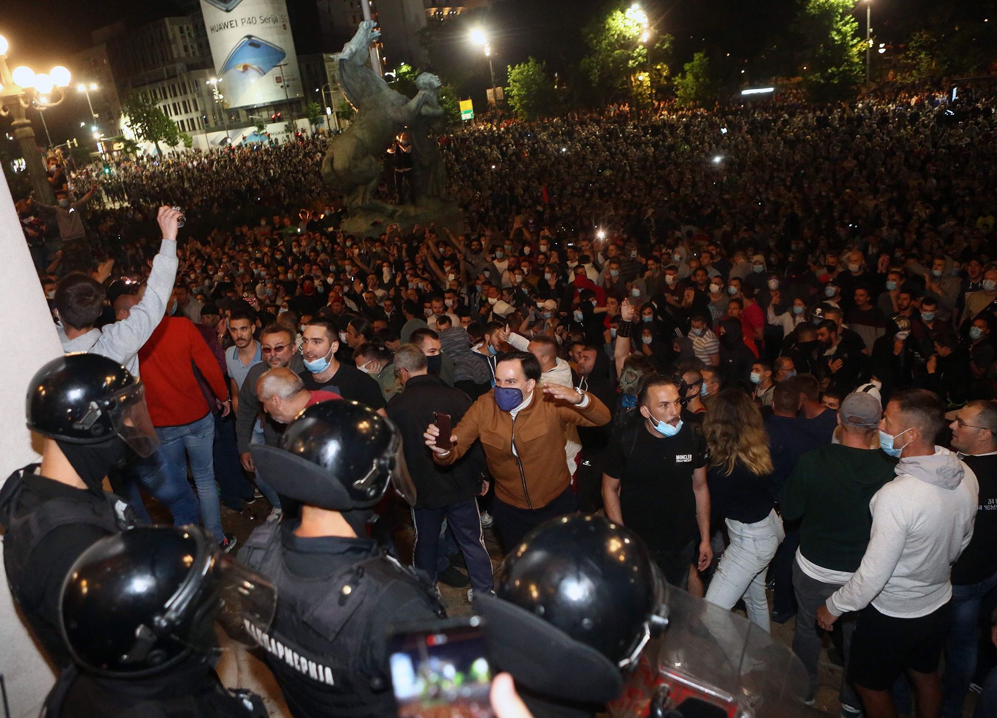 В ночь на 8 июля в столице Сербии прошла стихийная акция протеста против введения повторных ограничительных мер из-за распространения коронавируса. Жители Белграда вышли на улицы и попытались взять штурмом здание сербского парламента — Национальной скупщины. Граждане, недовольные планами властей о введении комендантского часа из-за COVID-19, потребовали отставки президента Сербии Александра Вучича, вступив в столкновения с полицией — протестующие закидывали полицейских камнями и бутылками, те в ответ применили слезоточивый газ. В результате пострадали 60 человек — 43 сотрудника полиции и 17 протестующих. Более 20 зачинщиков беспорядков задержаны.