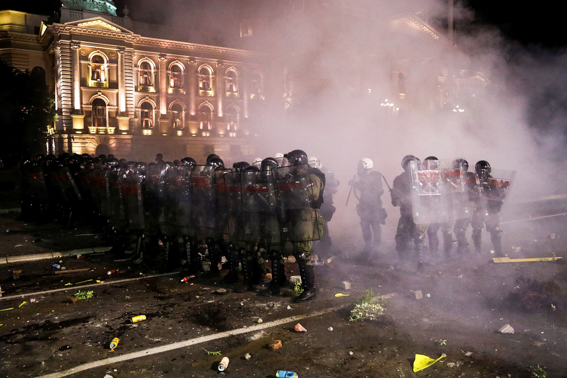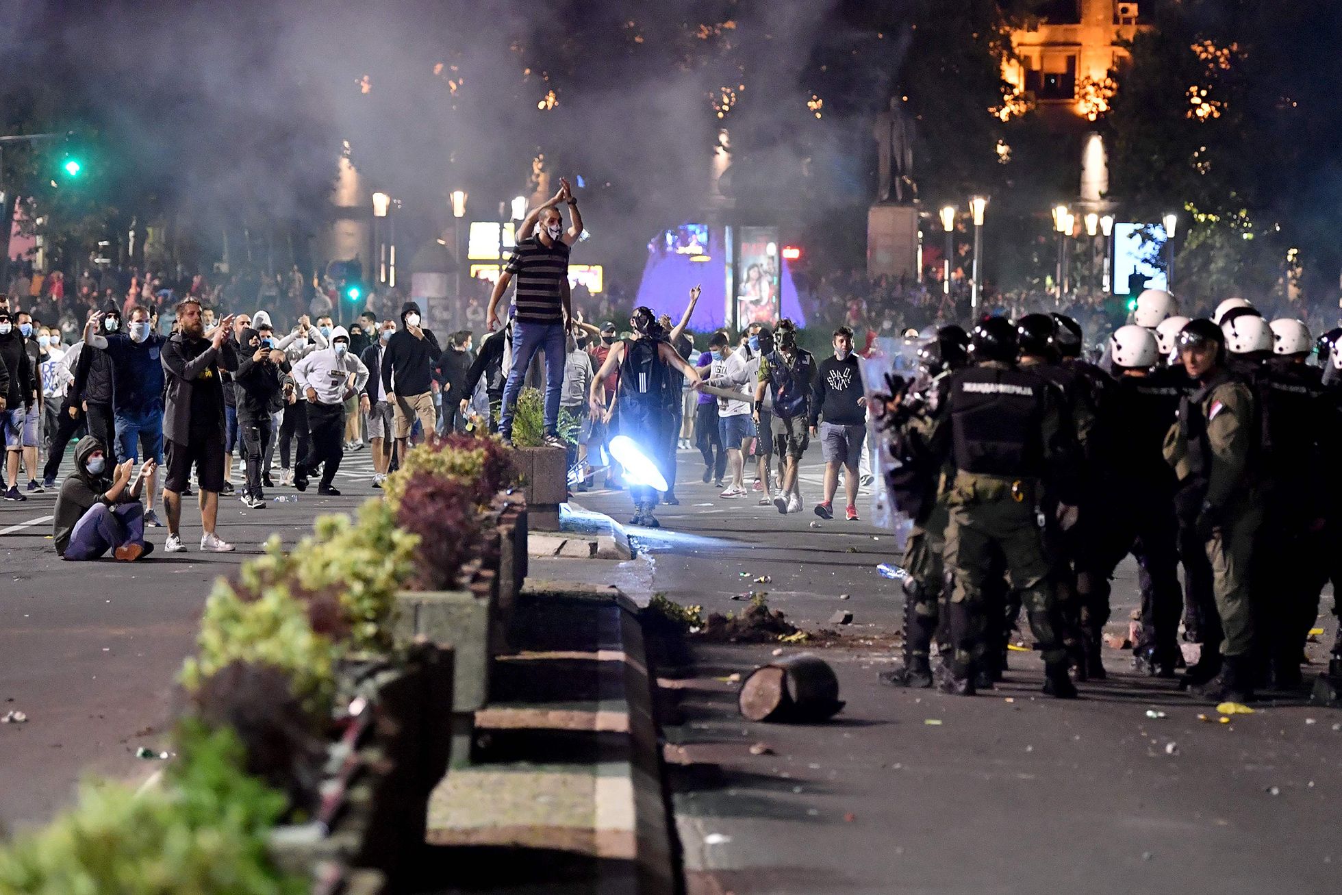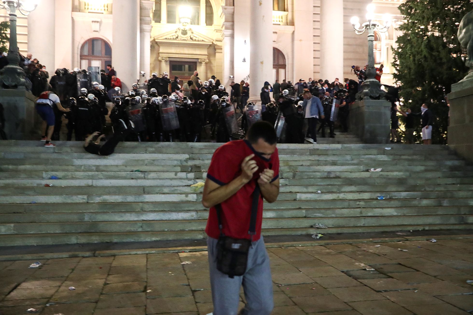 В ночь на 8 июля в столице Сербии прошла стихийная акция протеста против введения повторных ограничительных мер из-за распространения коронавируса. Жители Белграда вышли на улицы и попытались взять штурмом здание сербского парламента — Национальной скупщины. Граждане, недовольные планами властей о введении комендантского часа из-за COVID-19, потребовали отставки президента Сербии Александра Вучича, вступив в столкновения с полицией — протестующие закидывали полицейских камнями и бутылками, те в ответ применили слезоточивый газ. В результате пострадали 60 человек — 43 сотрудника полиции и 17 протестующих. Более 20 зачинщиков беспорядков задержаны.