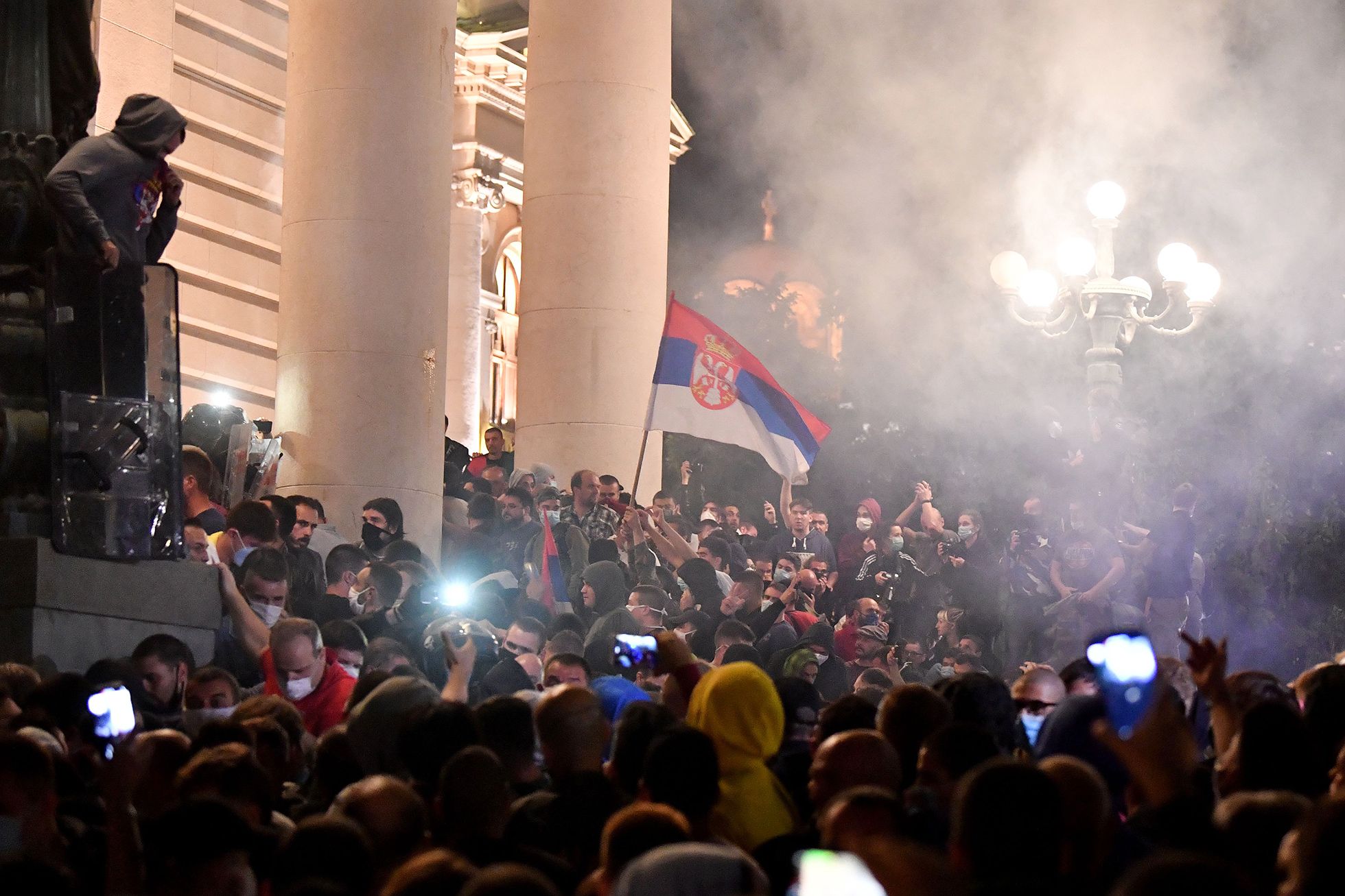 В Белграде противники повторного введения карантинных мер попытались взять штурмом парламент. Фотографии