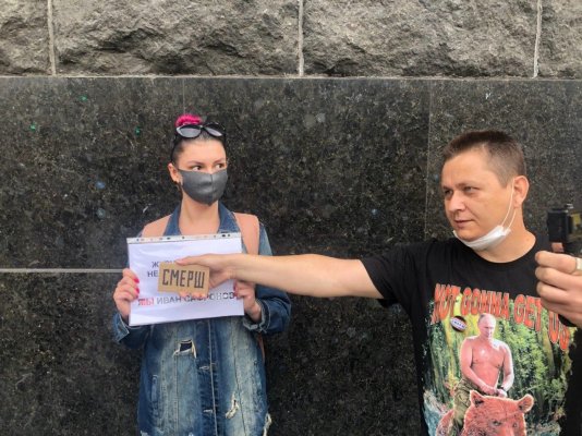 Во время проведения пикета к ней подошел провокатор из прокремлевского движения SERB Петр Рыбаков. Его тоже задержали.