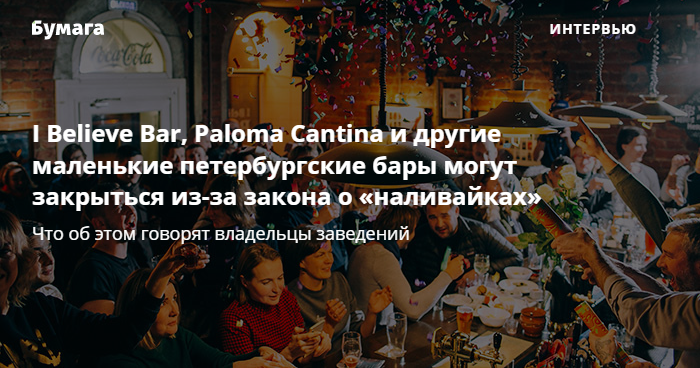 «Бумага» поговорила с владельцами семи петербургских баров, которые могут закрыться. Они рассказывают, почему считают законопроект вредительским и неэффективным и что планируют делать в случае его одобрения.