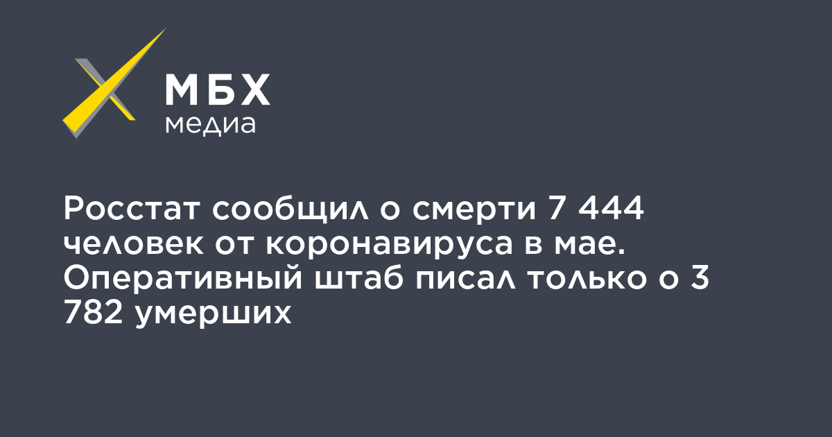 При этом по данным Росстата, всего за май в стране с скончались 12 444 человека с коронавирусом. У 5 000 из них COVID-19 указан среди прочих причин смерти как «прочее важное состояние».
