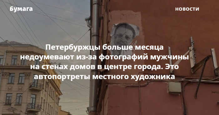 Больше месяца петербуржцы замечают на центральных улицах города портреты неизвестного мужчины. Про фотографии, приклеенные к стенам домов, очевидцы сообщали в соцсетях.