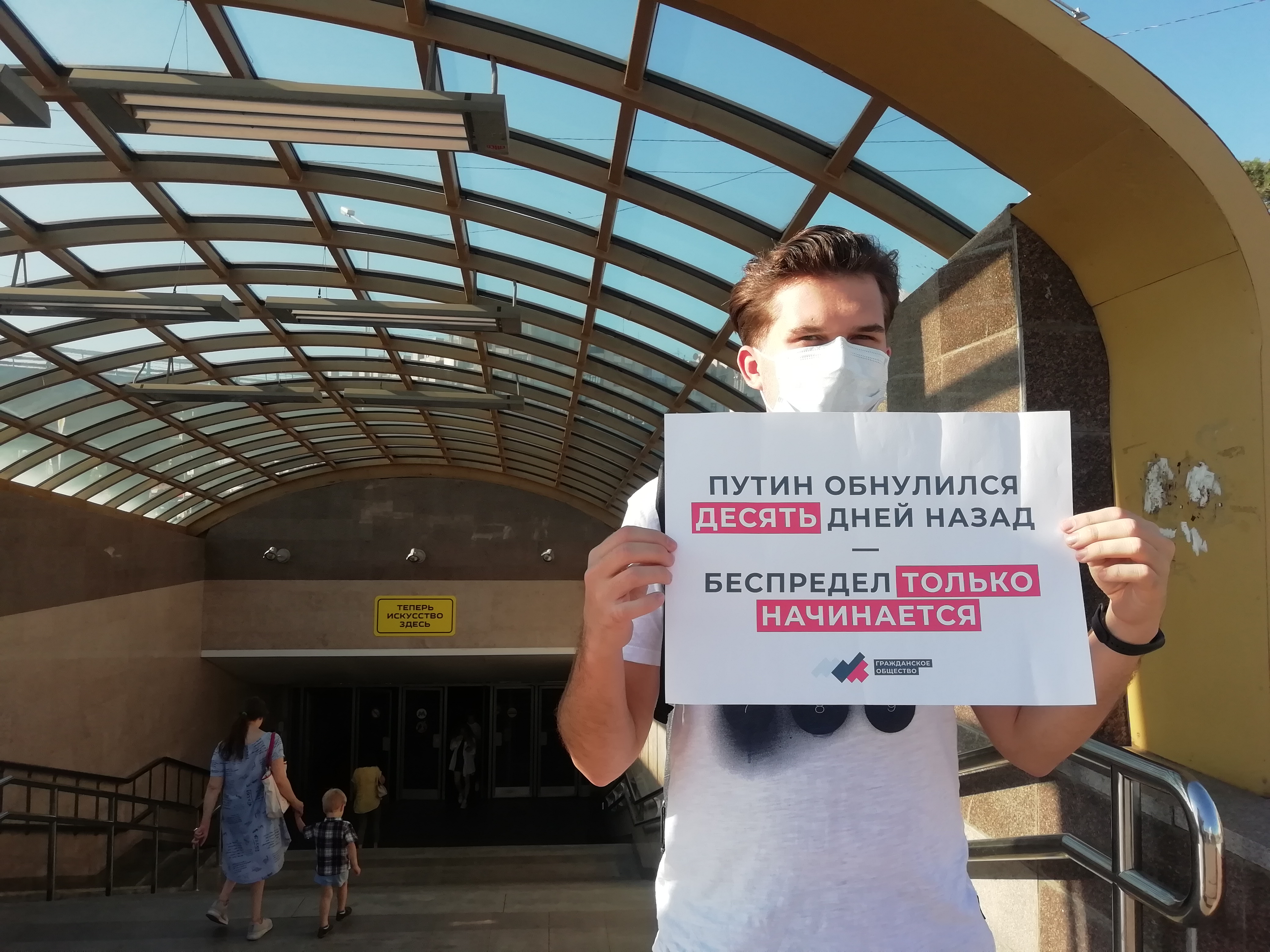 - 5 июля активисты провели в Омске сменяемые одиночные пикеты "против узурпации власти Путиным".