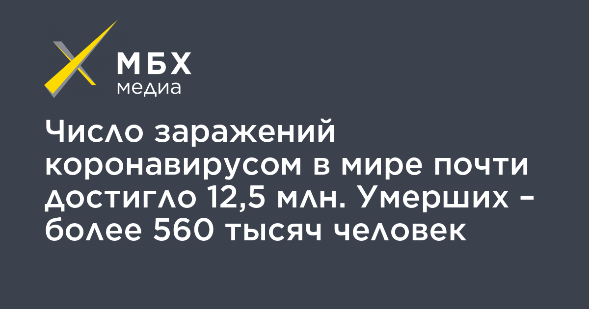 С начала пандемии коронавируса во всем мире инфекцией заразились почти 12,5 млн человек. По данным Университета Джона Хопкинса на 8:00 (мск), зафиксировано 12 498 467 случаев заражения.