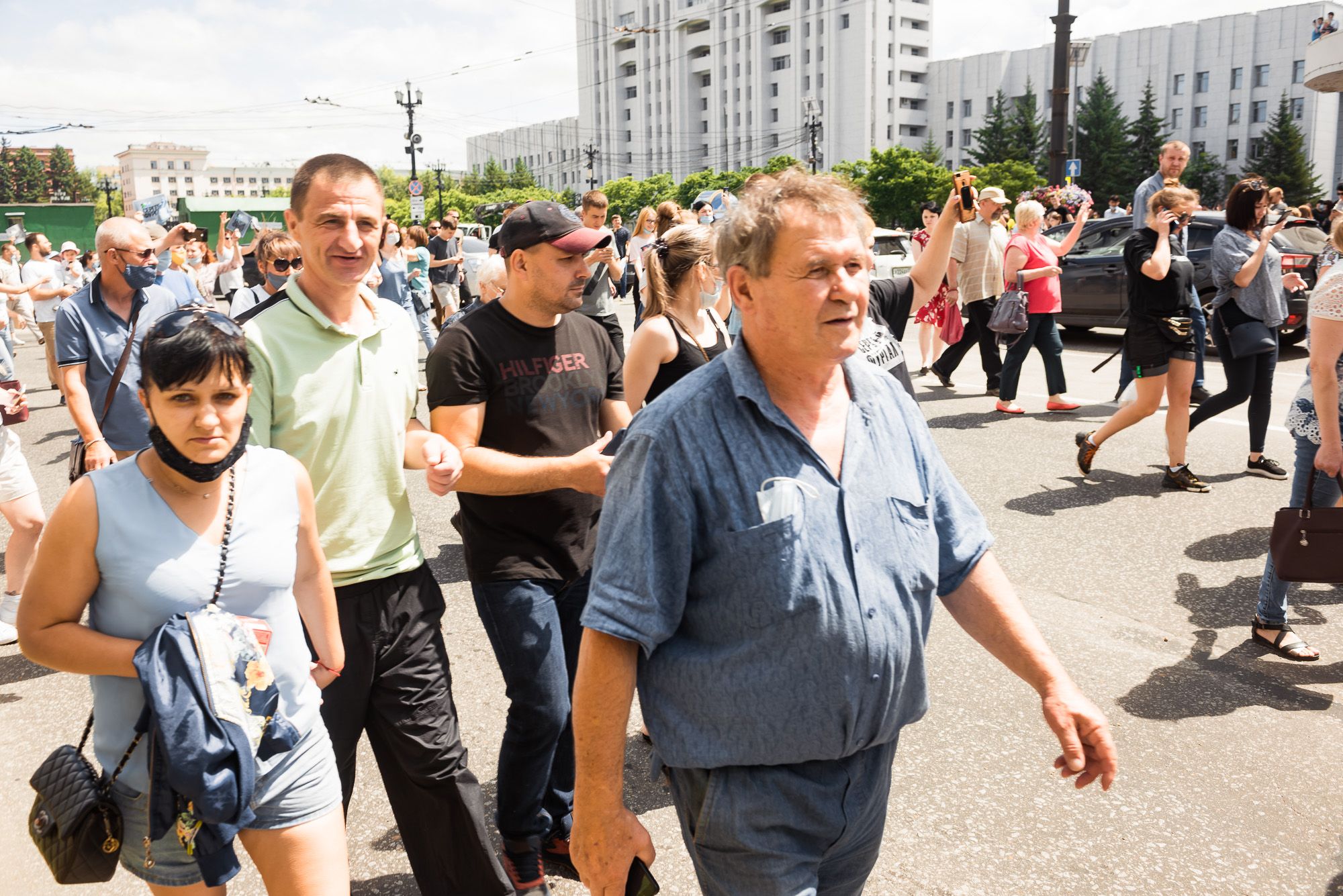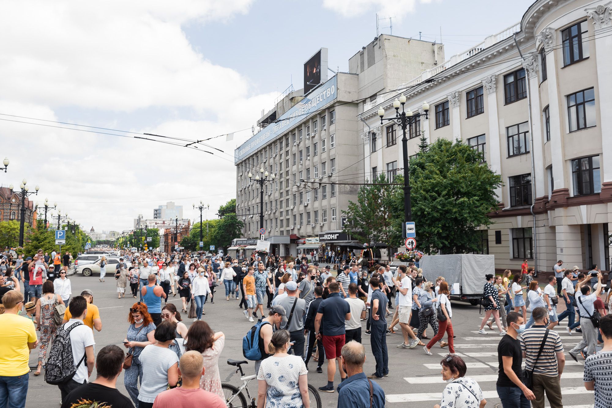 Местные власти призывали отказаться от участия в акции и даже выставили оцепление на площади им. Ленина – под предлогом "дезинфекции от коронавируса". Однако людей это не смутило – около полудня, к началу митинга, на площади собралось несколько сотен человек. После того как довольно небольшая площадка возле памятника Ленину перестала их вмещать, толпа сломала ограждения и устремилась на дезинфицируемую площадь, на которую выходят окна здания правительства Хабаровского края.