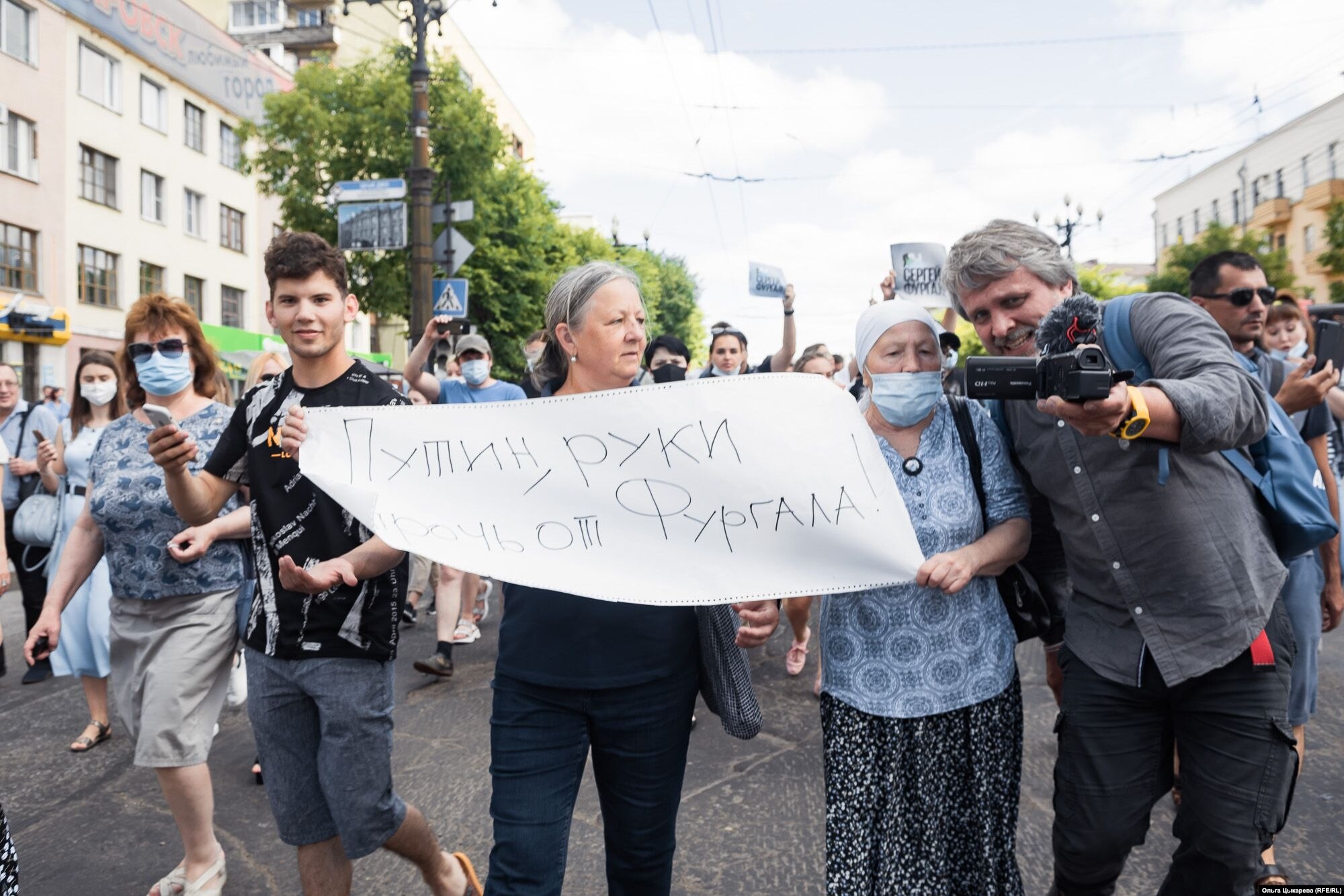 – У меня внучка училась в мореходном училище. Так там раньше как было: руководство все жировало, а студенты денег не получали. Как Фургал пришел, все поменялось. Я вообще за коммунистов, но молодежь молодцы, поддерживают Фургала. И я решила поддержать вместе с ними, – рассказывает Галина Васильевна. – Отбить, наверное, вряд ли получится, но хотелось бы. Обвинения эти, я считаю, выдуманы. А с ним хоть какая-то работа появляется для молодежи. Пусть возвращают нашего губернатора, на новые выборы, если будут, не пойду!
