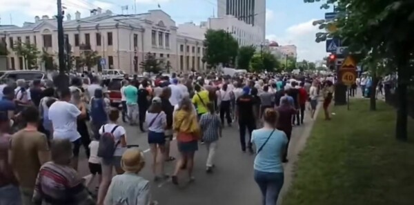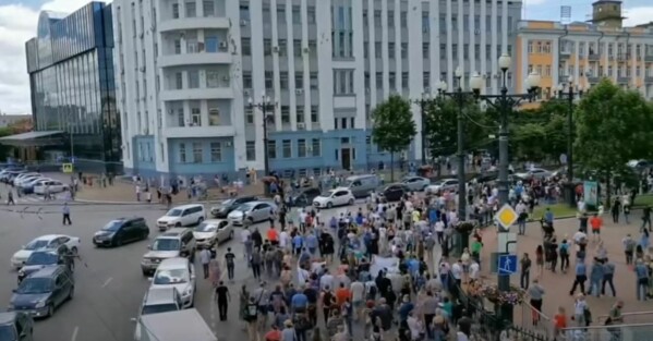 Хабаровск находится на самом востоке страны и когда люди вышли на митинг в центральной России только начали появляться первые лучи солнца.