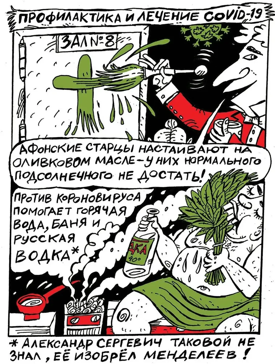 — Нашей группе приятно, что вы так популяризируете наш скромный труд, но в первую очередь это не смешно, а опасно. На мой взгляд, вы расположили «экспонаты» в вашем «музее» в один ряд, а есть более и менее опасные для общества фейки. «Лже-Пушкин», которого вы использовали как основной ход вашего комикса, — как раз самый безобидный в ряду «коронавирусных фейков», он сам по себе никого в опасность не поставил. А с другой стороны есть псевдорелигиозные предрассудки —