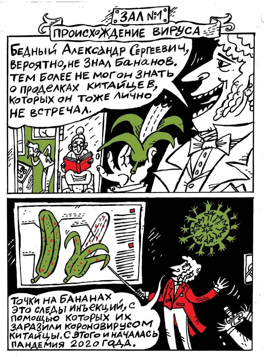 Экскурсия Лже-Пушкина по музею фейков о коронавирусе. Комикс