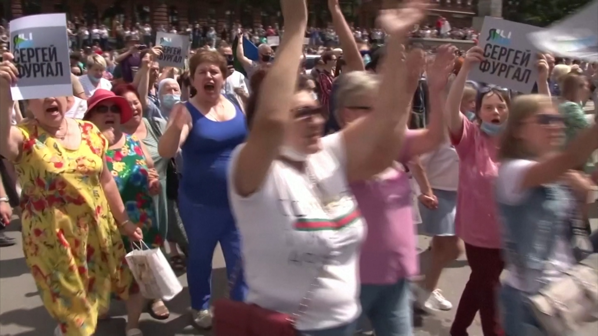 Жители Хабаровска второй день подряд вышли на протестную акцию в поддержку арестованного губернатора края Сергея Фургала.