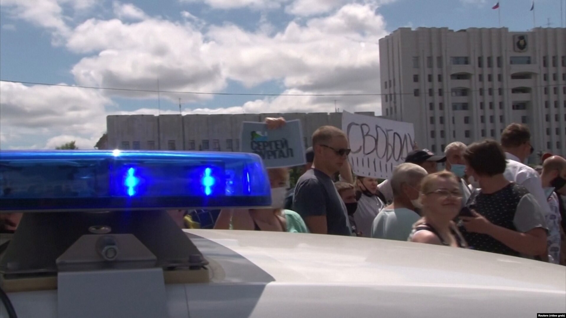 Около полудня по местному времени отряд бойцов ОМОНа со щитами в руках зашёл в здание правительства Хабаровского края. Видеозапись этого в своём "Ютьюбе" разместил канал RusNews. Накануне здесь состоялся многотысячный стихийный митинг в поддержку арестованного губернатора Сергея Фургала.