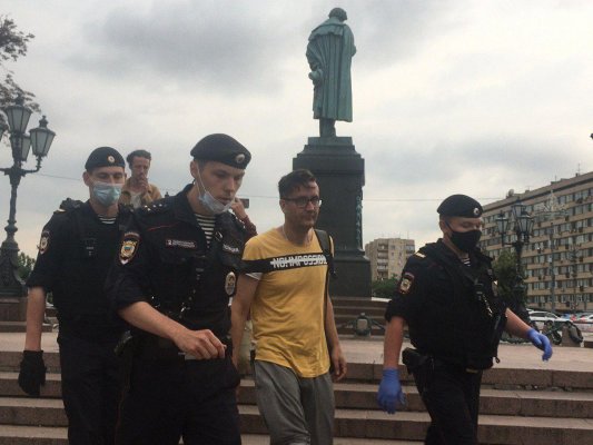 В Москве на Пушкинской площади задержали участника одиночного пикета Алексея Пугачева. Об этом ОВД-Инфо сообщил Александр Стогнушенко.