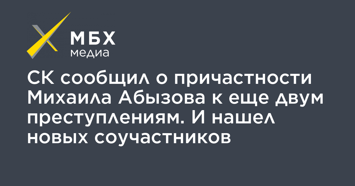 Следственный комитет установил причастность к новым преступлениям экс-министра Михаила Абызова, а также выявил сообщников преступлений, сообщает «РИА Новости» со ссылкой на официального представителя СКР Светлану Петренко.