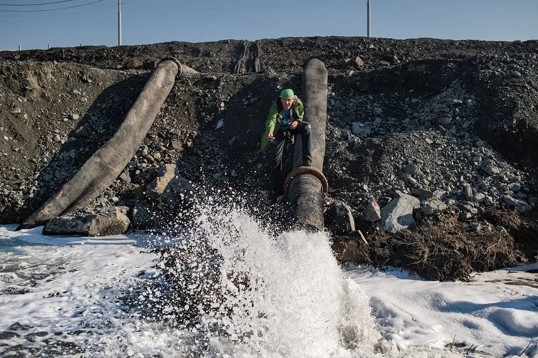 Прибывают полицейские. Трубы уже разбирают пугливые рабочие, но полицейских это не заботит. «Все уже зафиксировано», — говорит девушка. Ее напарник ползет вниз по склону — набрать молочной жижи в бутылочку.