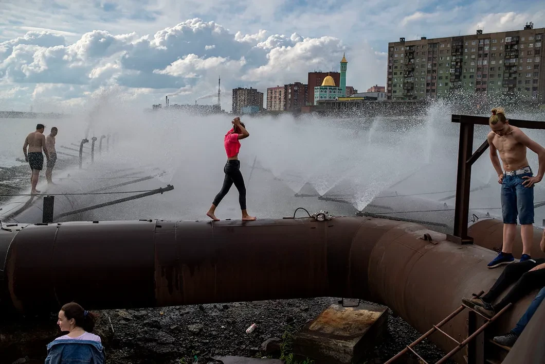 Нет, они не отнимают телефоны — они просят прекратить съемку. За ними подтягиваются рабочие. В какой-то момент один из рабочих и один из безопасников бросаются к насосным и отключают их. Через пару минут появляется «Служба спасения», подразделение МЧС. Насосы уже отключены, но мы показываем им видео с телефонов, и мужики хватаются за голову.