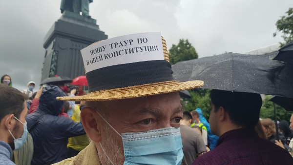 На Пушкинской площади организаторы кампании "Нет!" - Юлия Галямина, Андрей Пивоваров и Татьяна Усманова - собирали подписи под судебным иском об отмене итогов голосования по поправкам в Конституцию, предусматривающих обнуление президентских сроков Владимира Путина.
