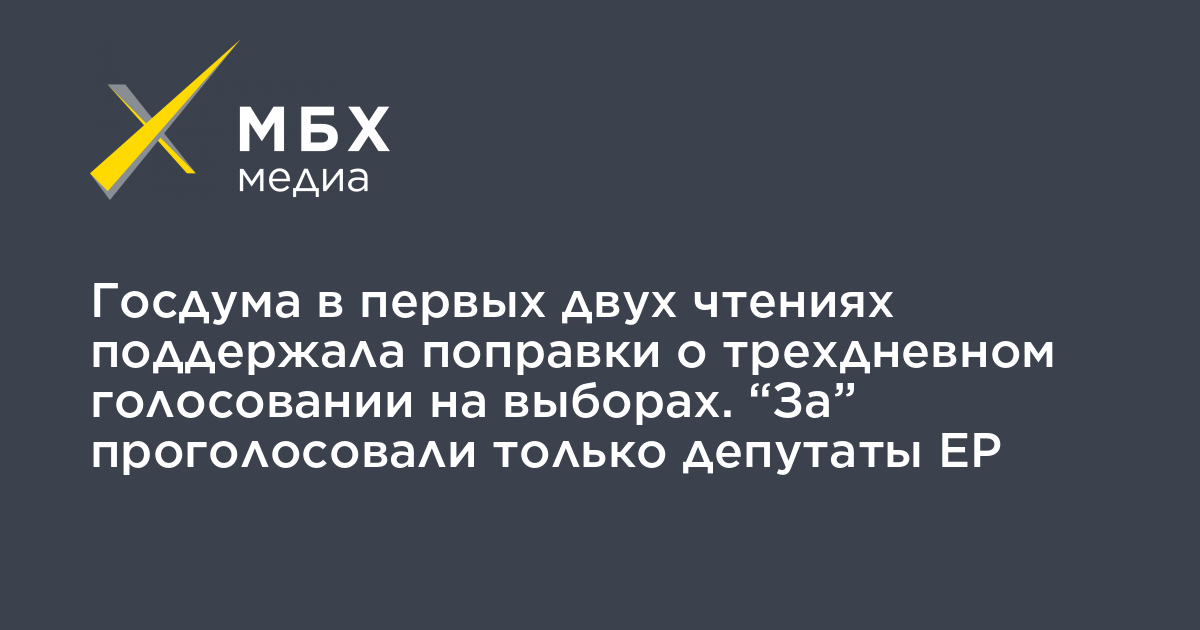 Госдума в первых двух чтениях поддержала поправки о трехдневном голосовании на выборах. «За» проголосовали только депутаты ЕР