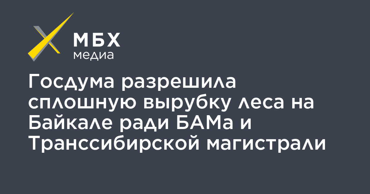 Госдума приняла законопроект, который выводит строительство проекта Байкало-Амурской (БАМ) и Транссибирской магистралей из-под ряда экологических ограничений, позволяя, в том числе, сплошную вырубку леса на Байкале. Об этом сообщает «Интерфакс».