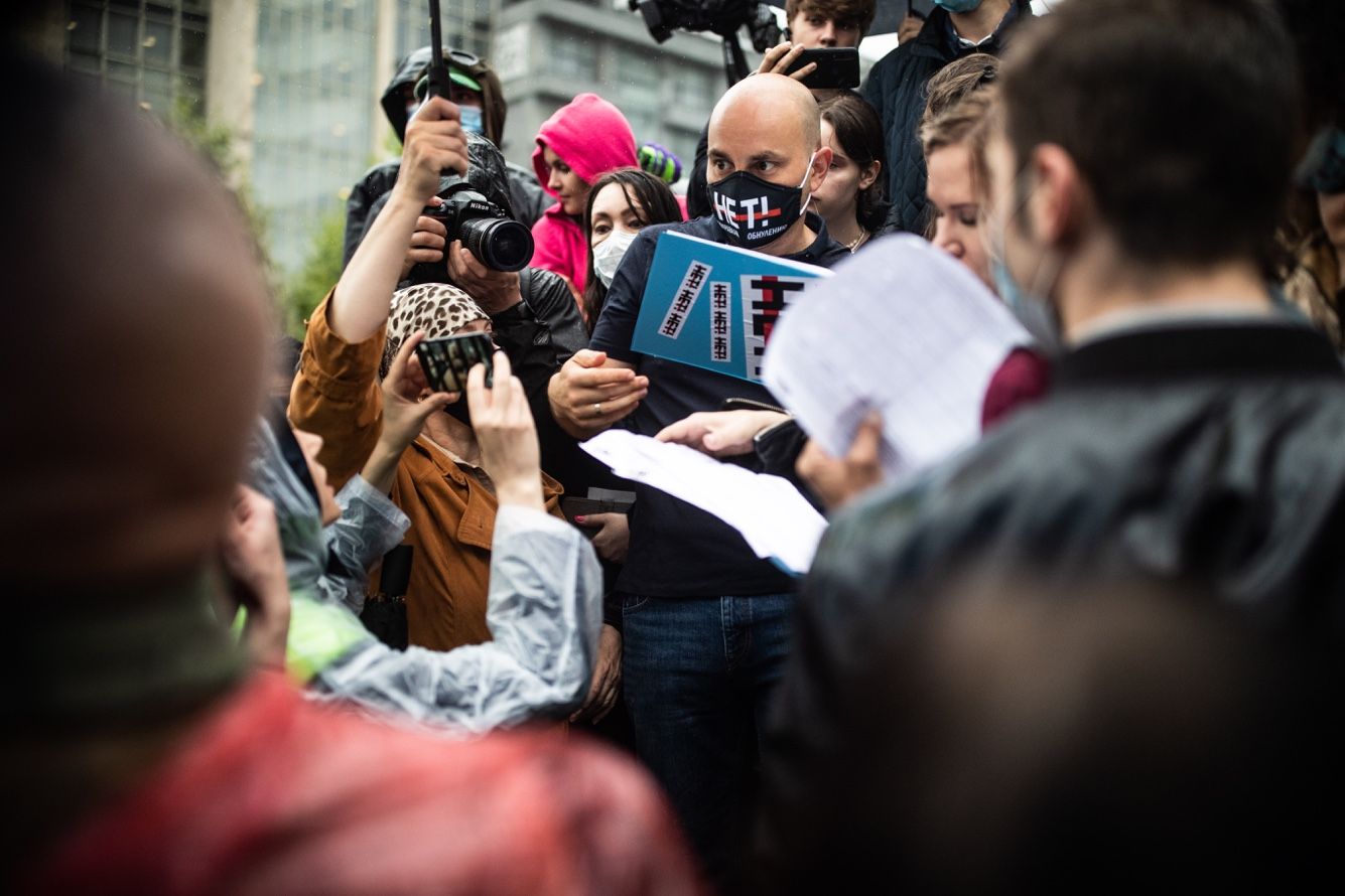 Изначально организаторы — кампания «Нет!» — планировали провести 15 июля митинг на Пушкинской площади. Но московские власти предсказуемо его не согласовали — формат акции изменили на не требующий разрешения мэрии сбор подписей под коллективным иском с требованием отменить итоги голосования. Его, по словам участников кампании, сначала направят в Верховный суд, а затем — в Европейский суд по правам человека.