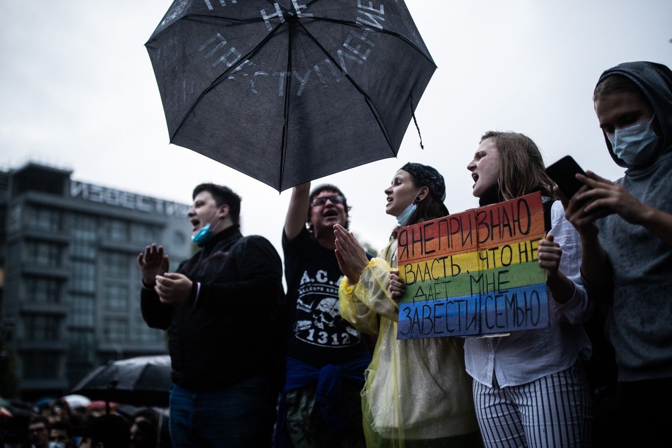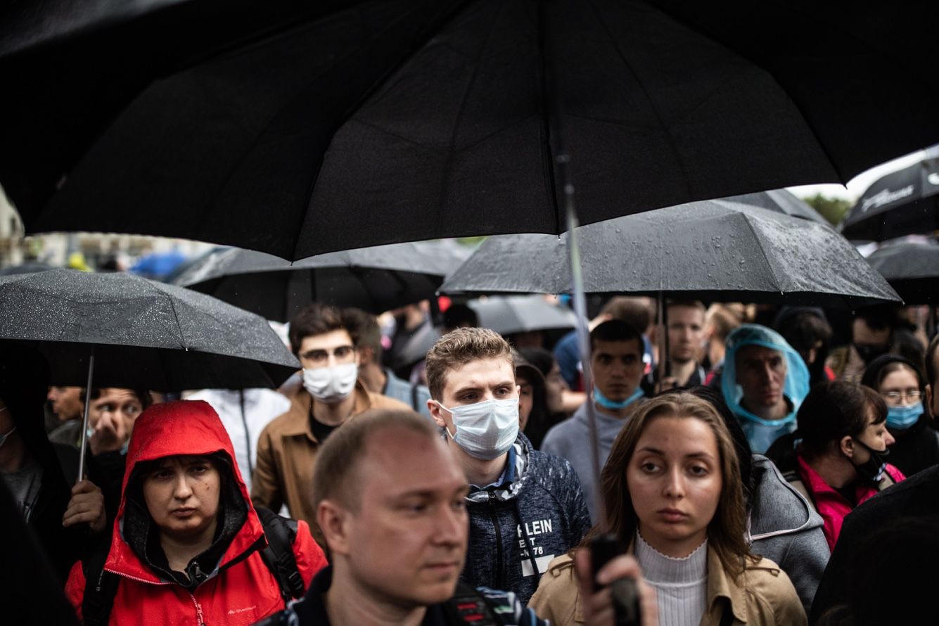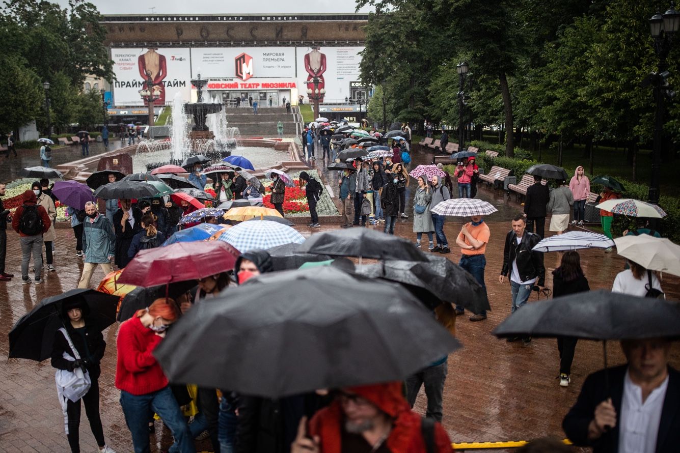 — А остальные люди не пришли, потому что это [голосование по поправкам] — антиконституционное занятие. Никто в этот плебисцит не поверил, и поэтому не пошли голосовать вообще, — подхватывает стоящая рядом женщина с зонтом.