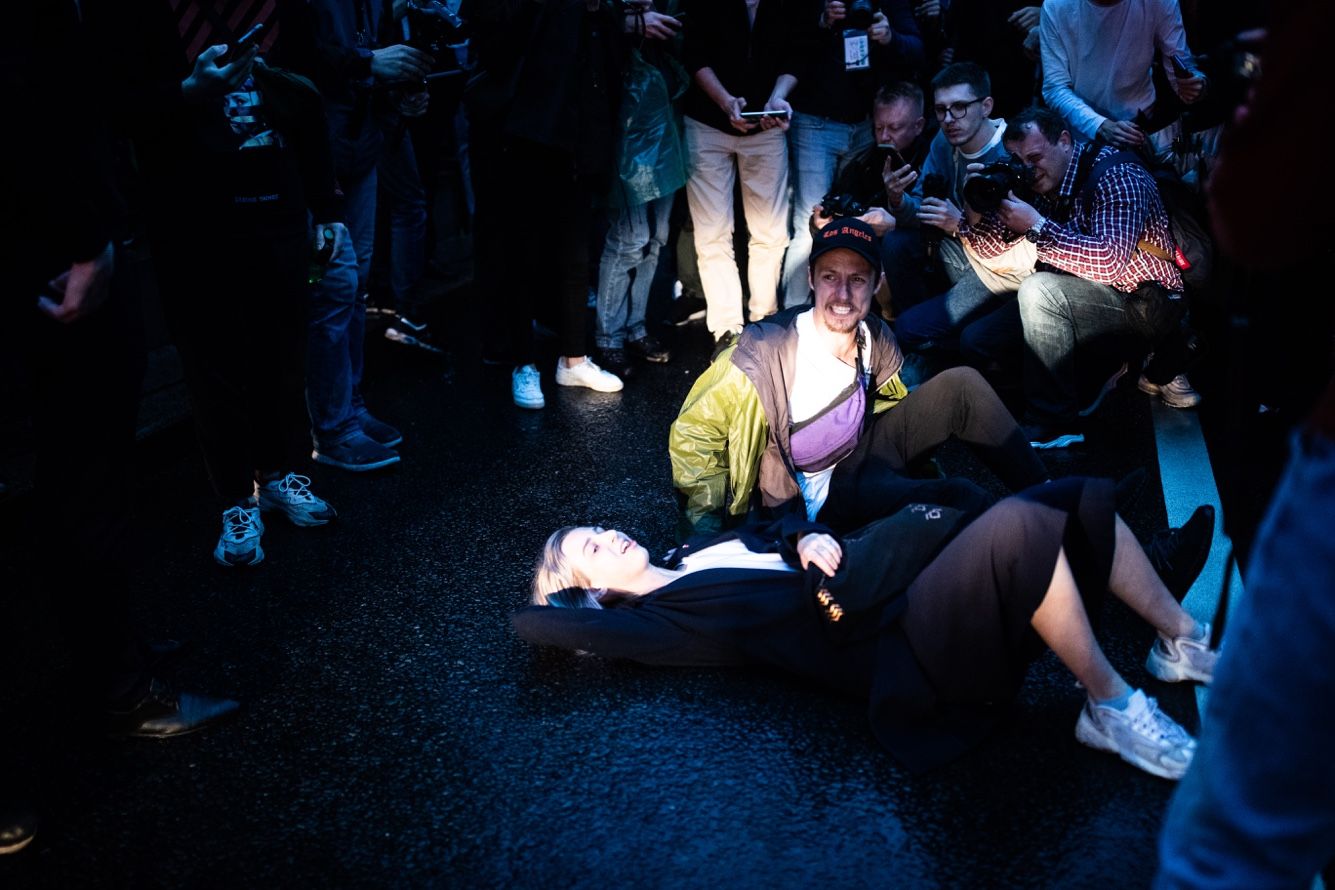 К 22 часам на тротуарах почти никого не остается, кроме журналистов. Полицейские снимают оцепление, несколько автозаков уезжают. Кажется, что все закончилось. Но через несколько минут задержания возобновляются. Сотрудники цепочкой заходят на тротуар и выбирают, кого взять на этот раз.