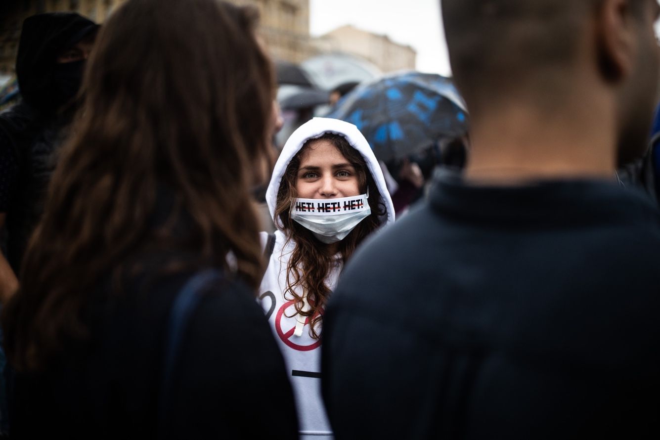 Находятся и те, кто не согласен с лозунгами. Во время скандирования «Гомофобам позор» мужчина из толпы возмутился: «Страну попутали, эй!». Но потасовок не возникает. Не реагируют присутствующие и на провокации пришедших на площадь активистов провластного движения SERB — те мешали участникам акции давать интервью и пытались убедить их в правильности принятия поправок.