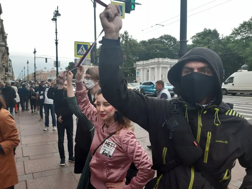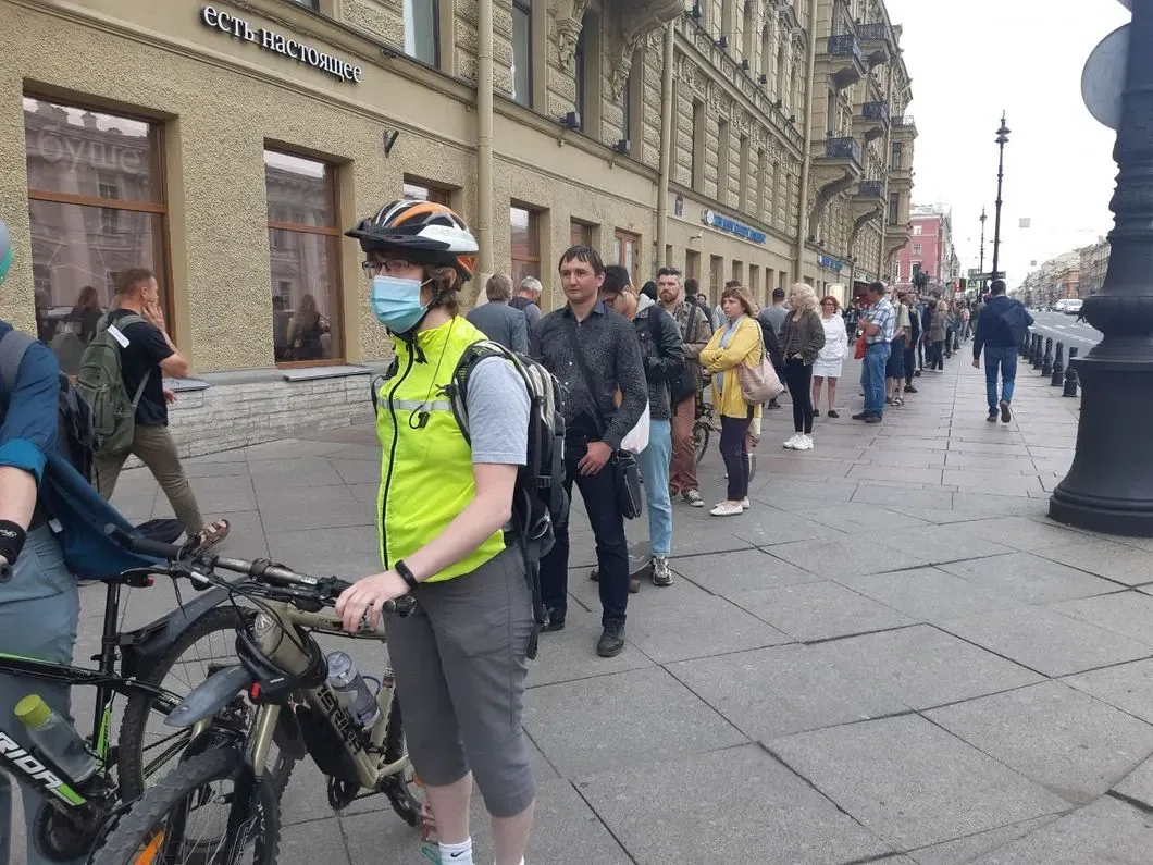 В Петербурге на Малой Садовой улице собрались не менее тысячи человек, передает корреспондент «Новой». Очередь из желающих подписаться растянулась примерно на километр. Некоторые собравшиеся скандируют в том числе «Свободу политзаключенным!». На месте работает туристическая полиция (сотрудники со знанием иностранного языка), проведению акции они тоже не препятствуют.