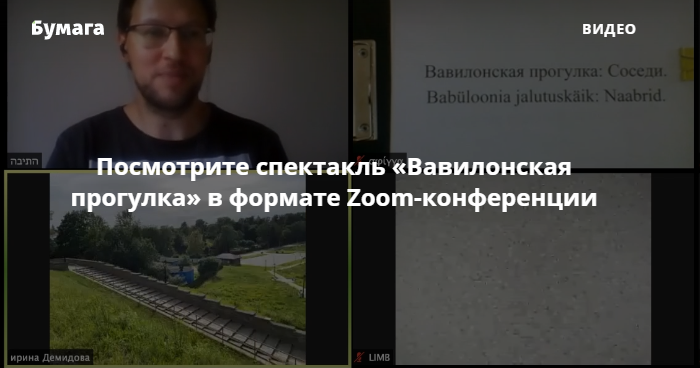 В рамках фестиваля «Точка доступа» проходит бесплатный онлайн-показ спектакля «Вавилонская прогулка» о незнакомцах, которые гуляют по Таллину, Нарве, Ивангороду и Петербургу — и рассказывают о происходящем в Zoom-конференции.